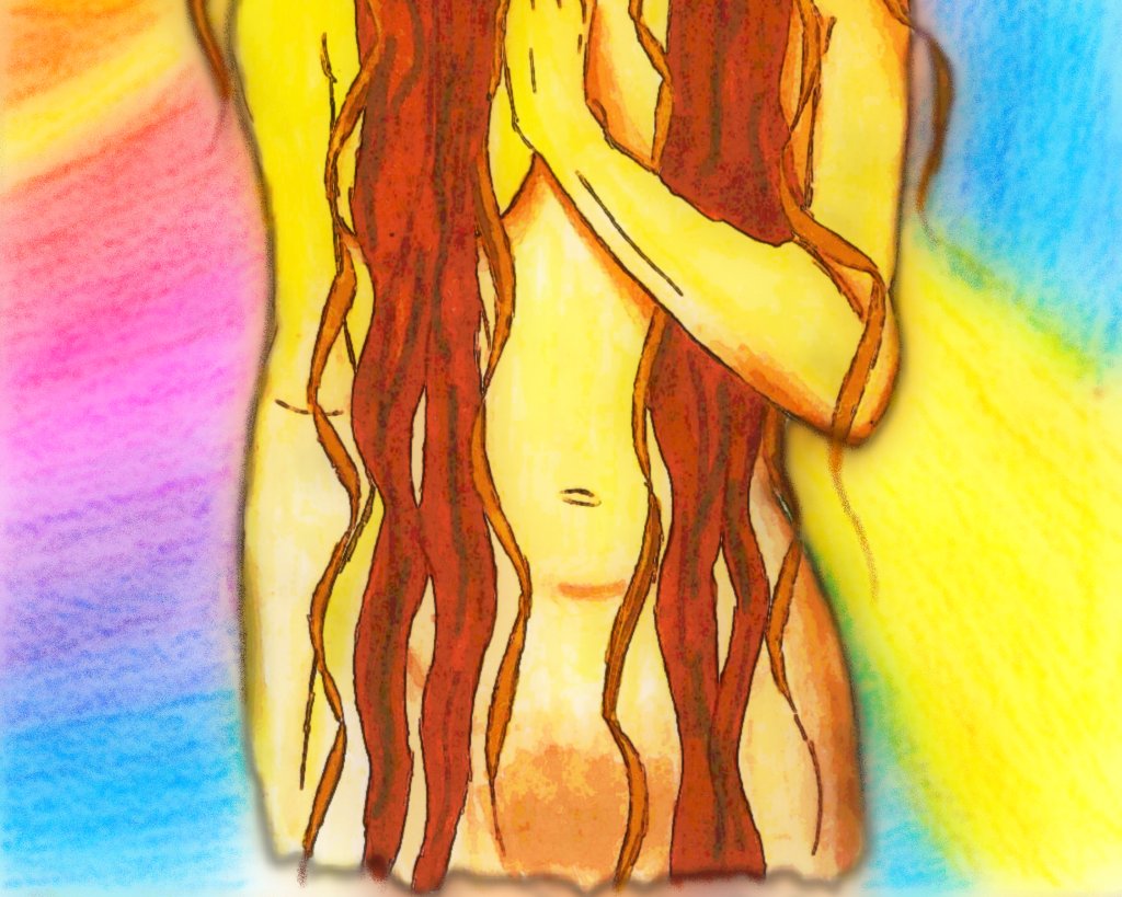She was crafted from the sea, with a faint layer of pale skin over muscles that gracefully curve, undulate, constantly in motion, now elegantly flowing away from my hands, now savagely crashing into me. I tell her that sometimes and she says I don’t need to charm her anymore; I’m already on top of her, her bare breasts just an inch from my chest, her legs fastened around my waist, her wild red curls fanned out on the pillow. Fire on the sea. When she notices my tongue hesitating to make those words, she ties it to hers.