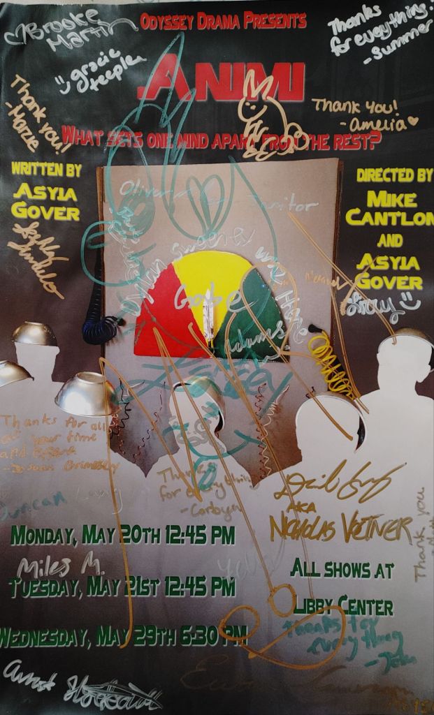 Animi was a sinister science fiction mystery that concluded Asyia’s partnership with Odyssey Middle School’s theater class. When the brilliant and inquisitive Skye transfers to a new school for very gifted children, she feels out of place in more than just social ways. Though her confidence has plummeted, her keen eye for detail and her emotional insight keeps her on the edge of a constellation of disturbances in town. Is anyone else thinking what Skye’s thinking right now?! The clues unfold in Animi….